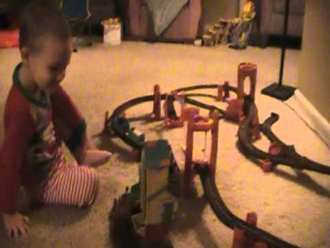 DJ playing with new toy train 1st time